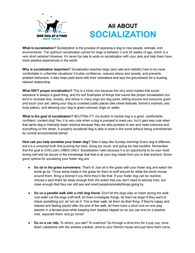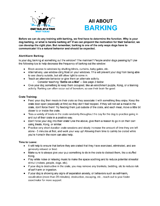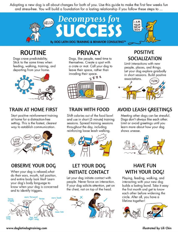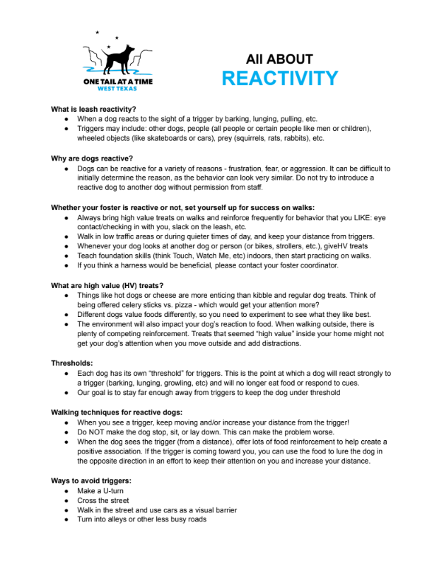 This page includes brief resources that address many common behaviors that fosters and/or adopters work to manage with their pets, as well as tips for decompression, enrichment and reading dog body language.